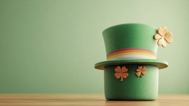 Green St. Patrick's Day Hat with Rainbow and Shamrocks Decoration
