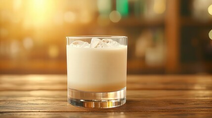 A glass of whiskey or scotch with a shamrock and rainbow.