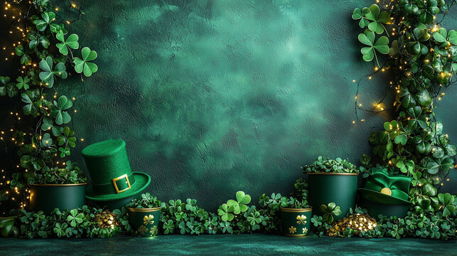 St. Patrick's hat over a pub table, St. Patrick's day banner, irish party