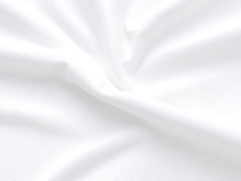 Detailed close-up of white tennis shirt fabric showing lightweight pique knit cotton with breathable moisture-absorbing material, ideal for sportswear, casual polo, or performance athletic tops