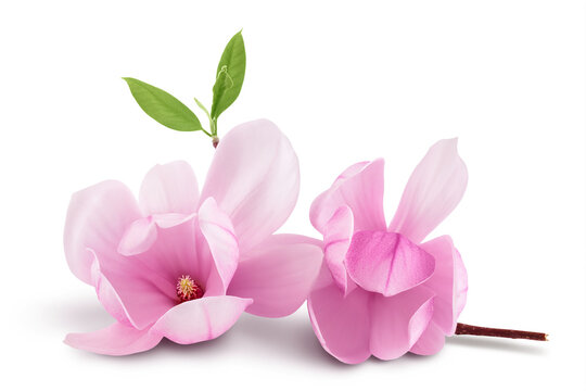 Pink magnolia flower isolated on white background with full depth of field