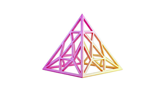 Geometric Pyramid Sculpture with Pink and Yellow Gradient