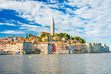 Croatia, Istria, beautiful old town of Rovinj on Adriatic sea coastline, seascape view