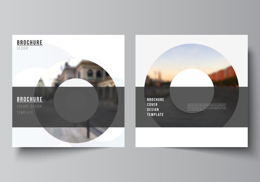 Vector layout of two square format covers templates for brochure, flyer, magazine, cover design, book design, brochure cover. Background template with rounds, circles for IT, technology. Minimal style