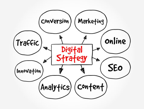 Digital Strategy - application of digital technologies to business models to form new differentiating business capabilities, text concept mind map
