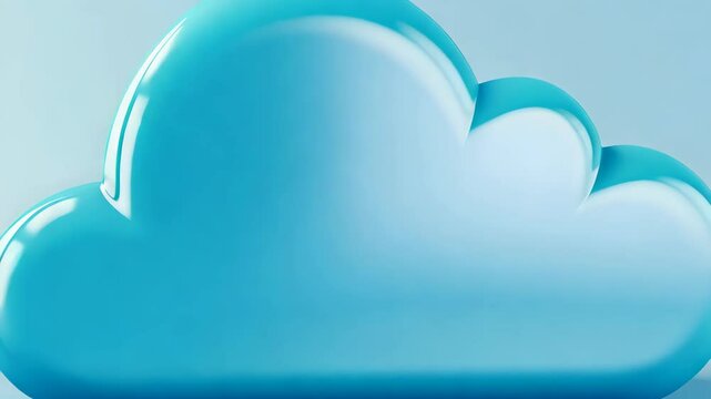 A glossy blue cloud icon on a soft gradient background features smooth edges and a shiny surface. It symbolizes cloud computing and digital networking, perfect for tech content and promotions.