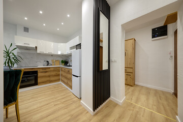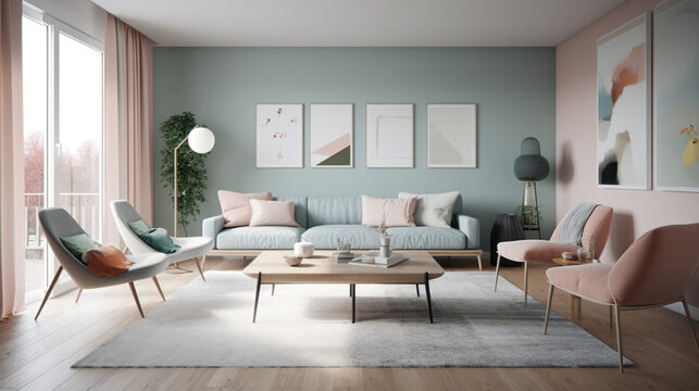 Wizualizacja pustego przestronnego wnętrza w stylu klasycznym,  pusty salon, tło generative ai