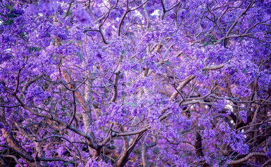 Colourful jacaranda tree in bloom in Brisbane, Queensland.