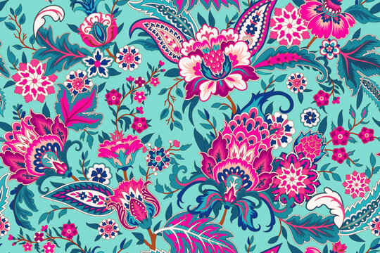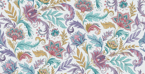 Damask paisley jacobean flower blossom blooming leaves isolated seamless pattern. Blossom. Illustration