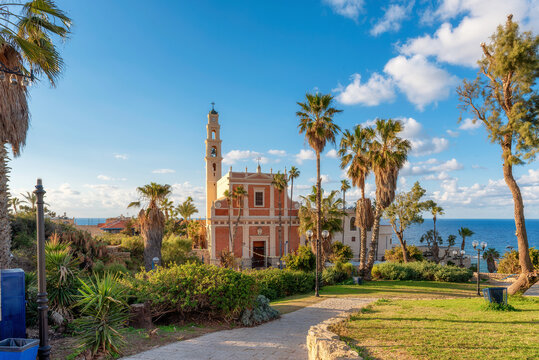 A walk in the Old Jaffa, Israel. View of St. Peter's Church in Jaffa, Israel.