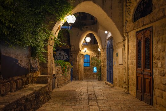 Tel Aviv Namal Yafo historic Old Jaffa port with art galleries, boutiques and old houses.