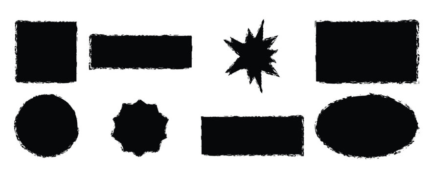 set of various shapes with jagged edges drawn with brush