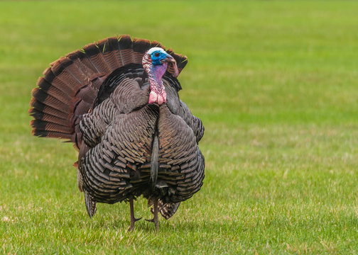 Male eastern wild turkey (Meleagris gallopavo) in a Wisconsin field in autumn