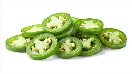 jalapeno peppers isolated on white background. Green chili pepper with clipping path. Top view. Flat lay
