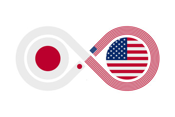 Japanese flag and the Chinese flag waving. International politics and documentary.