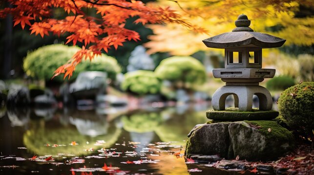 Horizontal Garden view of the Meigetsuin Temple, Yamanouchi, Kamakura, Kanagawa, Japan