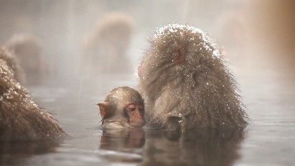The Japanese Macaque (Snow) Monkeys enjoying a bath in the Onsen of Jigokudani Yaenkoen