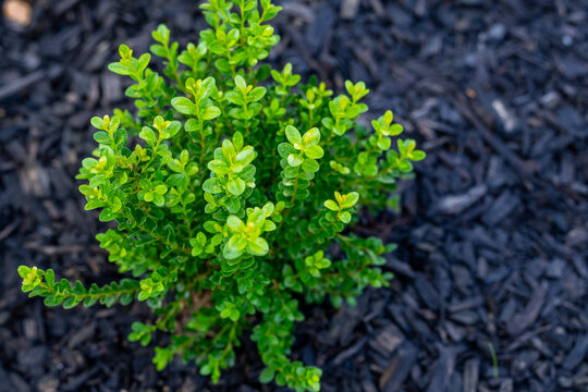 Boxwood with dense, vivid green foliage. Evergreen and hardy foundation plant. Buxus microphylla var. japonica 'Gregem'