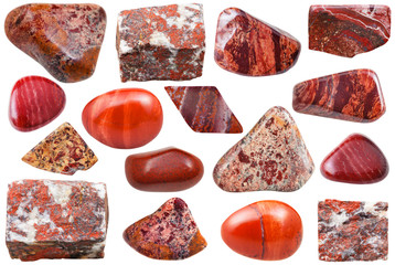 macro shooting of natural mineral stone small pebble red jasper gemstone from Russia isolated on white background