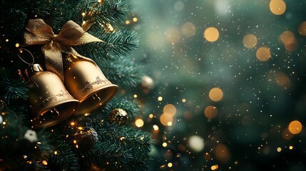 Christmas decorations with fir tree golden jingle bells