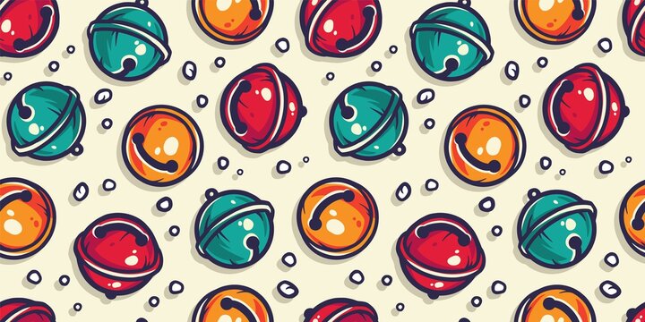 Colored seamless pattern wallpaper with decorative christmas bells for the new year holiday. Winter illustration for december party design