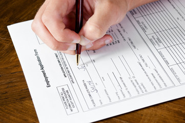 Hand filling out job application