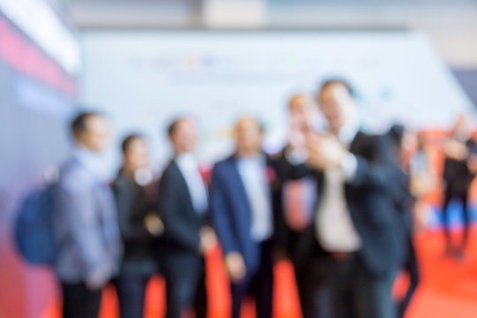 Abstract blurred people at exhibition hall of expo event trade show. Business convention show or job fair. Business concept background.