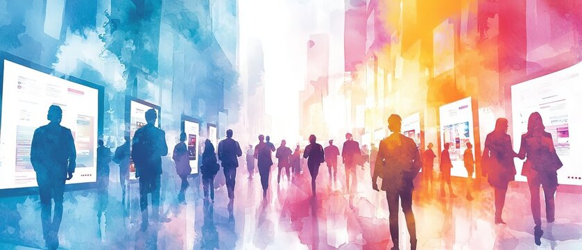 Generative AI : Abstract blurred defocused tradeshow event exhibition business convention show job fair technology expo Organization company trade fair event Marketing advertisement concept