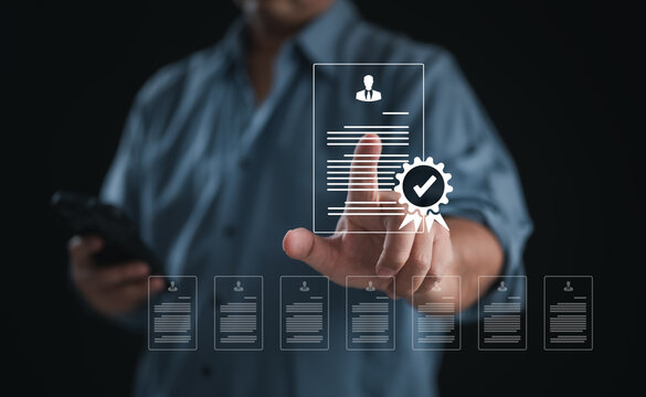 Remote hiring and online job interview concept. HR work with CV and application letter review to find best candidate for job position. Modern, digital
