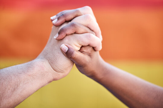 We want the best for one another. Shot of two protestors joining hands in unity during a protest.