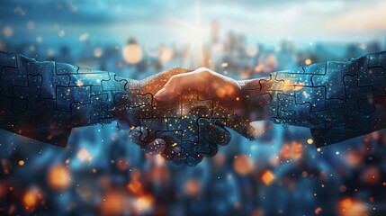 Two Hands Shaking, Creating a Puzzle Piece Image