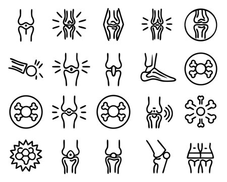Arthritis knee joint pain icon linear icons. Bone joints icon illustration. Osteoporosis icon isolated