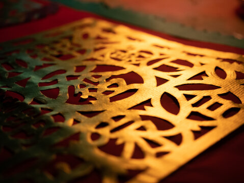 Close-up Joss Paper (ghost or spirit money) that made into burnt offerings common in Chinese ancestral worship on Ghost Festival. Abstract pattern background.