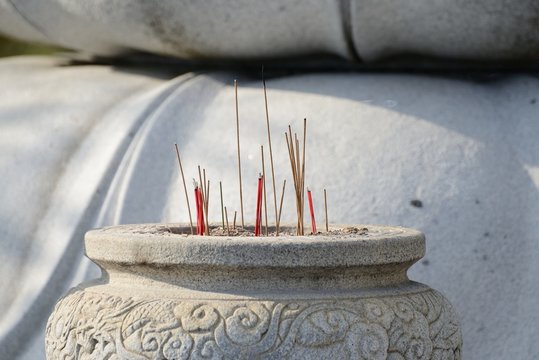 burning joss sticks in Buddhist temple