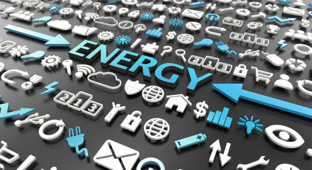 "energy" word with 3d icons