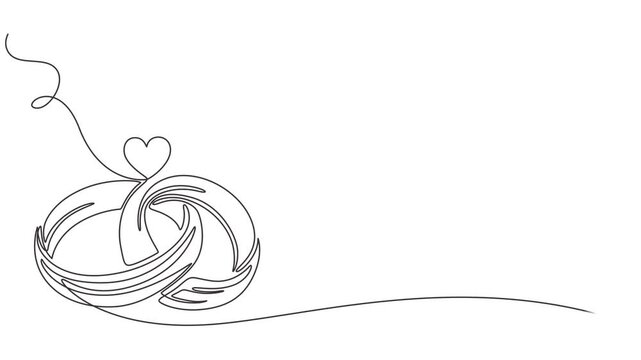 ring continuous one line drawing animation, Animation of a single line drawing of two wedding rings. Continuous contour movement of two wedding rings. Continuous video with one line, Video. Drawing