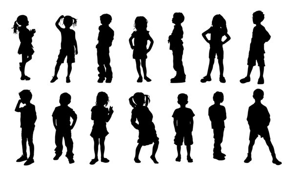 Bunch of cheerful joyful cute little children playing together and having fun. Group portrait of happy kids huddling, looking down at camera and smiling. Low angle, view from below. Friendship concept