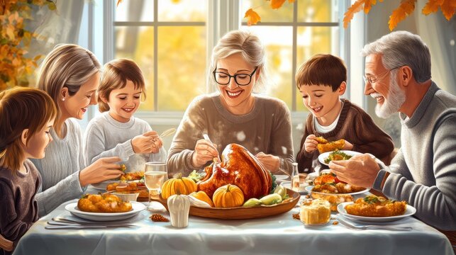 Joyful Thanksgiving Celebration: Family Enjoying Delicious Meal Together