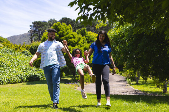 A happy family joyfully gardening together, planting vibrant flowers in a sunlit backyard, flat design illustration.