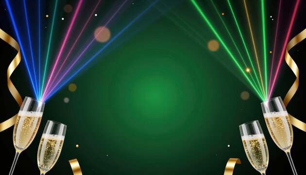 Celebrate New Year's Eve with toasting champagne glasses and fireworks, a joyous moment with confetti and the countdown clock striking midnight
