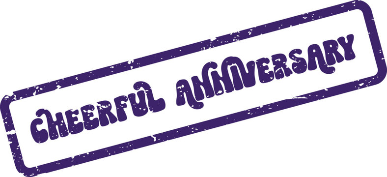 An upbeat purple Cheerful Anniversary decorative stamp perfect for celebrating cherished milestones and memories