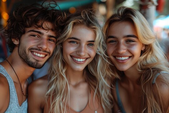 A group of dynamic friends covered in confetti, enjoying a playful and joyous moment together