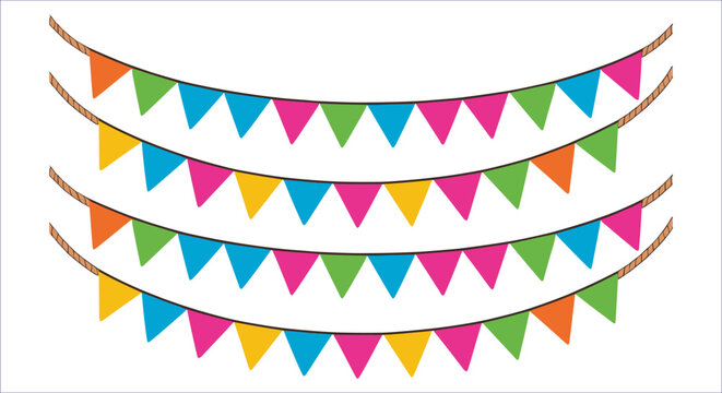 Colorful party bunting flags garland vector illustration. Festive hanging triangle flags decoration vector design. Party decoration bunting flags garland vector