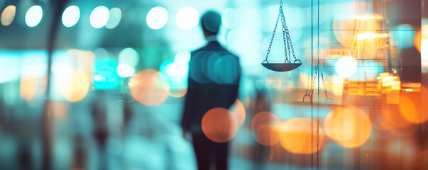 Law day celebration with lawyer holding gavel and scales