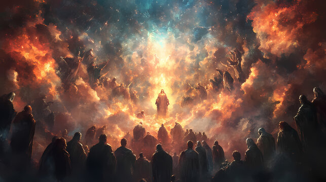 Divine revelation  the moment of final judgment as heaven opens and god descends to earth
