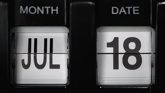 retro flip calendar with a date change from the seventeenth of July to the eighteenth of July. daily calendar with a change of days of the month. close up.