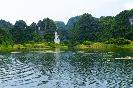 Ninh Binh, Vietnam - July 18, 2022 : Beautiful Natural Landscape In Trang An Landscape Complex Of Ninh Binh Province, Vietnam. Trang An Area Was Designated As A Dual UNESCO World Heritage Site.