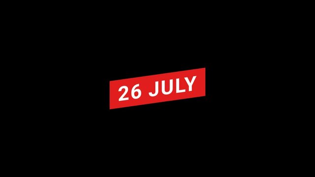 26 July Animation Video, The twenty six of july is shown with smoky translucent text against a dark void featuring small bright fiery sparks