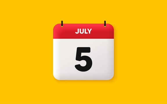 5 july calendar page vector. 3d one day calendar date appointment, deadline, event reminder illustration. Abstract three dimensional daily date calendar.