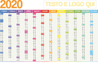 2020 Italian planner calendar with vertical months and note space on white background